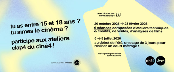 Nous restons à ton écoute, si tu as la moindre question, n’hésite pas à nous écrire à clap4@cine4.be. Tu auras rapidement une réponse d’Aline.