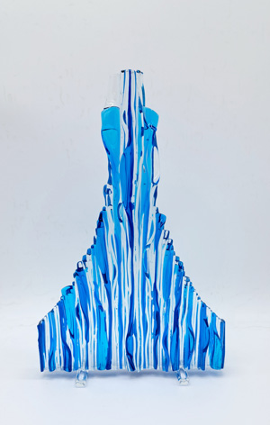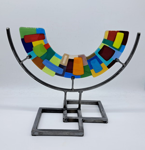 Le fusing ou verre fusionné consiste en la découpe, l’assemblage et la superposition de plaques de verre à froid avant leur fusion au four. Translucide, le verre joue avec la lumière au rythme de la météo, des saisons…