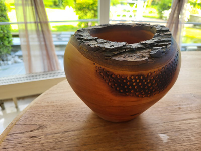 Fasciné par les arbres, j’ai commencé, le tournage sur bois afi n de créer des objets variés. L’arbre déraciné par la tempête ou élagué par le bûcheron se voit offrir une nouvelle vie sous forme d’objets. Différentes étapes se succèdent, la pièce prend forme… Les nuances de l’aubier et du coeur, différentes pour chaque essence de bois, donnent à l’objet un caractère unique. Oncé, ciré ou huilé, le bois revit sous forme de saladiers, bols, boîtes, pieds de lampe, bougeoirs et autres objets. Chacune de mes pièces revêt un caractère unique.