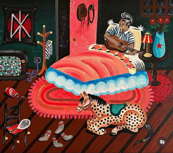 Héritier de la tradition de la peinture naïve, Lafuite renouvelle par ailleurs les formes qui furent celles d’un Douanier Rousseau, Michel Delacroix ou des peintres de tradition folklorique Sud-américains. Il peint des scène de la vie courante avec une prédilection pour les moment de détente. Ses couleurs sont soutenues et offre une belle dynamique à des compositions souvent très structurées par l’architecture des espaces qu’il dépeint. Chaque toile est pour lui l’occasion de proposer une expérience sensible et spontanée. Dans celles-ci l’humanité et le monde animal vive une quiétude joyeuse.