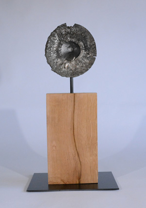 Je démarre une conversation avec un éclat de bombe ou d’obus avec une histoire qui lui est propre. Ces reliquats des deux dernières guerres m’interpellent et m’inspirent. D’une pièce dont le but est de semer le désordre, la mort, le désespoir… ; je la transforme en une image riche, expressive, ouverte et laissant la place à l’imaginaire. J’explore, j’ajoute, j’accentue, j’estompe, j’intensifie… je suis à l’écoute de ma sculpture.