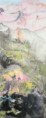 Aquarelle ou couleurs naturelles, fleurs fraîches ou collages s’invitent sur le papier au gré de l’inspiration du moment mais toujours dans l’objectif de faire passer le même message : que la nature est belle ! Que les gestes soient aléatoires ou davantage guidés par l’intention fixée au départ, les oeuvres laissent une part d’inachevé et d’imaginaire pour inviter l’observateur à compléter à sa guise. Le recyclage de matériaux oubliés et la recherche d’une démarche respectueuse de l’environnement donne également une couche de sens supplémentaire aux tableaux composés.