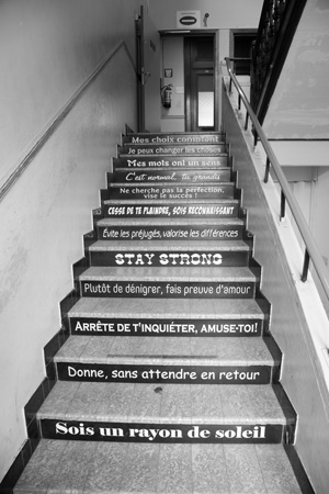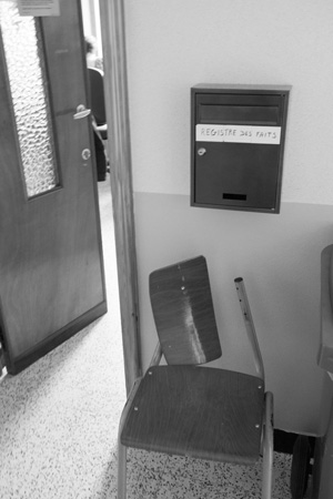Juste avant la fi n de ma vie d’enseignante, j’ai entamé une formation en photographie à l’académie de Charleroi. Une année, j’ai photographié les écoles secondaires, celles où j’avais travaillé, puis j’ai étendu le projet à d’autres écoles. J’aime photographier les classes, les couloirs, etc. épinglant certaines traces de ceux qui y passent une partie de leur journée. J’espère que mon regard provoquera l’une ou l’autre réaction ou réveillera certains souvenirs chez le spectateur.