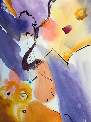 J’ai découvert l’Aquarelle en 2021 et très vite, j’ai eu l’envie de m’éloigner des chemins doux et sage de l’Aquarelle traditionnelle. J’adore y mettre de la matière jouer avec le graphisme, créer mes propres outils en utilisant des objets provenant de la nature ou de mon environnement. Devant ma feuille blanche c’est à chaque fois une nouvelle aventure. L’eau et la couleur évoluent d’une façon surprenantes parfois déroutante, mais toujours passionnante, sous mes yeux émerveillés. . Je puise mon inspiration, dans les émotions, la nature, la musique ou encore le silence.