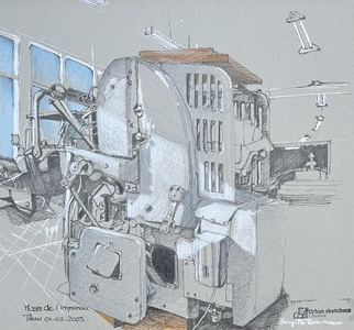 Ma pratique s’articule autour de 3 éléments fondateurs : la ligne, la perspective, le noir & blanc. La rencontre avec le mouvement Urban Sketchers a marqué un tournant dans mon travail. Dessiner sur le vif, dans des lieux changeants et en dialogue avec d’autres passionnés, m’a conduite à explorer de nouvelles techniques, de nouveaux médiums. Au coeur de ma démarche, la recherche de lumière. Je présente mes carnets, dessins et peintures réalisés en atelier, accompagnés d’un regard sur la communauté USK qui stimule mon approche.