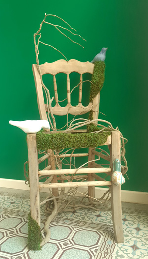 Le fil conducteur dans mon travail est la nature et la vie. Je m’attache à lui rendre hommage et aussi à la réinventer. Je cherche à exprimer une certaine poésie et à procurer un apaisement presque méditatif à celui qui prend le temps d’observer l’oeuvre. Pour cela j’utilise la peinture, le collage, la céramique, le bois,… j’aime mélanger l’ancien qui a déjà eu une vie, le nouveau et des éléments de la nature pour raconter des histoires, libre à chacun d’en inventer d’autres. Bon voyage à la découverte de mon univers.